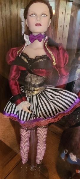 Tonner Dark Mistress from Sinister Circus. Dressed redheaded doll complete $185 Outfit only $130, nude doll only $75 |
